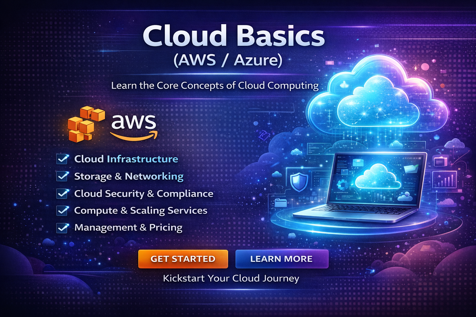 Cloud Basics (AWS / Azure) – Learn core cloud concepts, services, and deployment fundamentals using AWS and Microsoft Azure platforms.