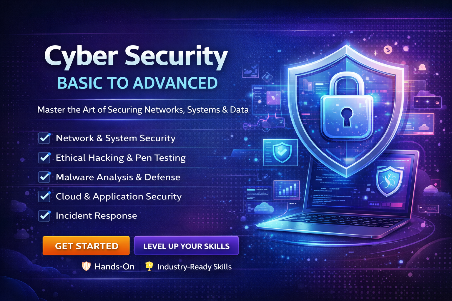 Cyber Security (Basic to Advanced) – Learn essential to advanced security concepts, tools, and techniques to protect systems, networks, and data from cyber threats.